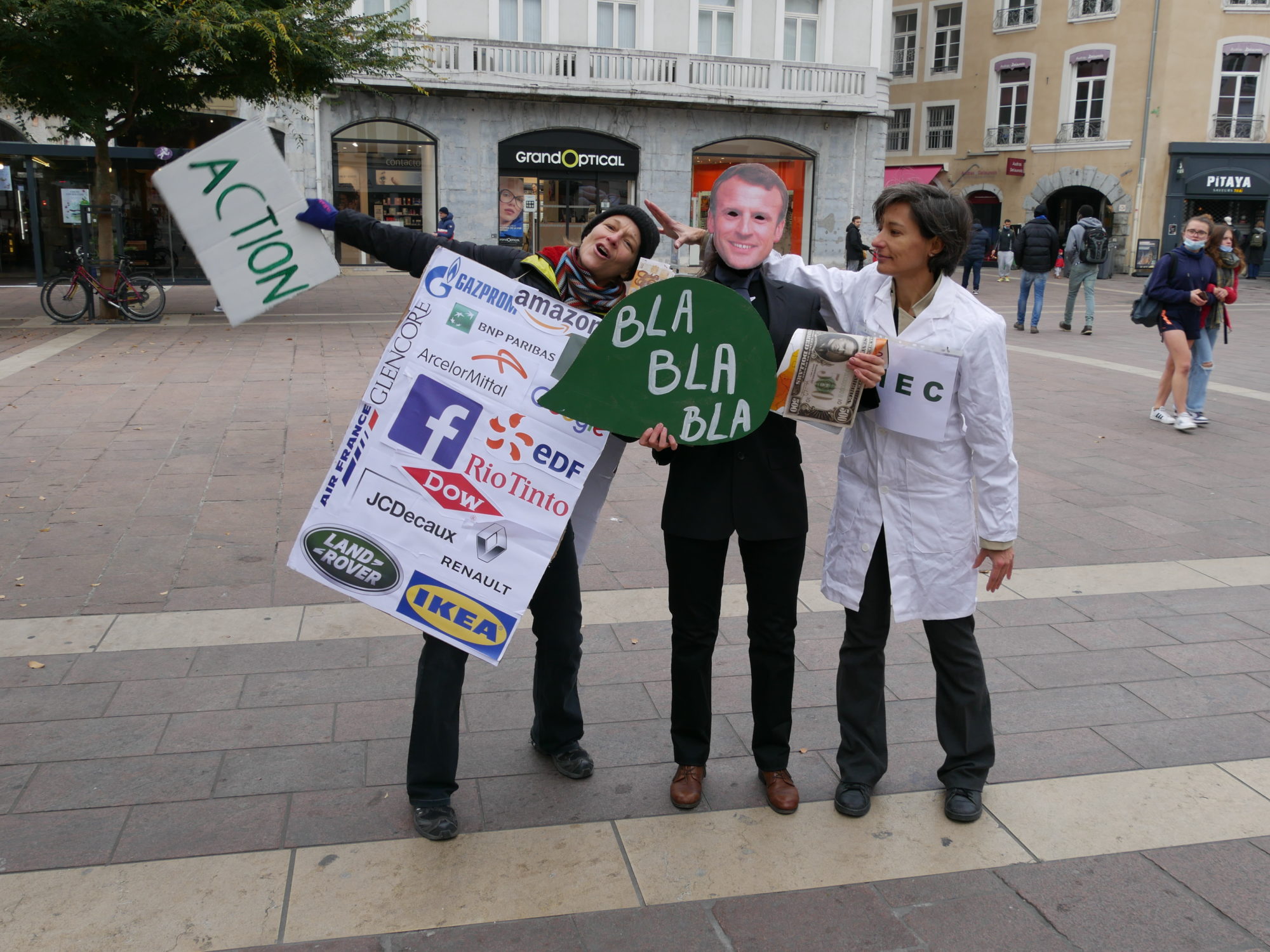 Une action non violente dans les rues de Grenoble pour dénoncer le « blablabla » de nos dirigeant.e.s politiques lors de la COP26